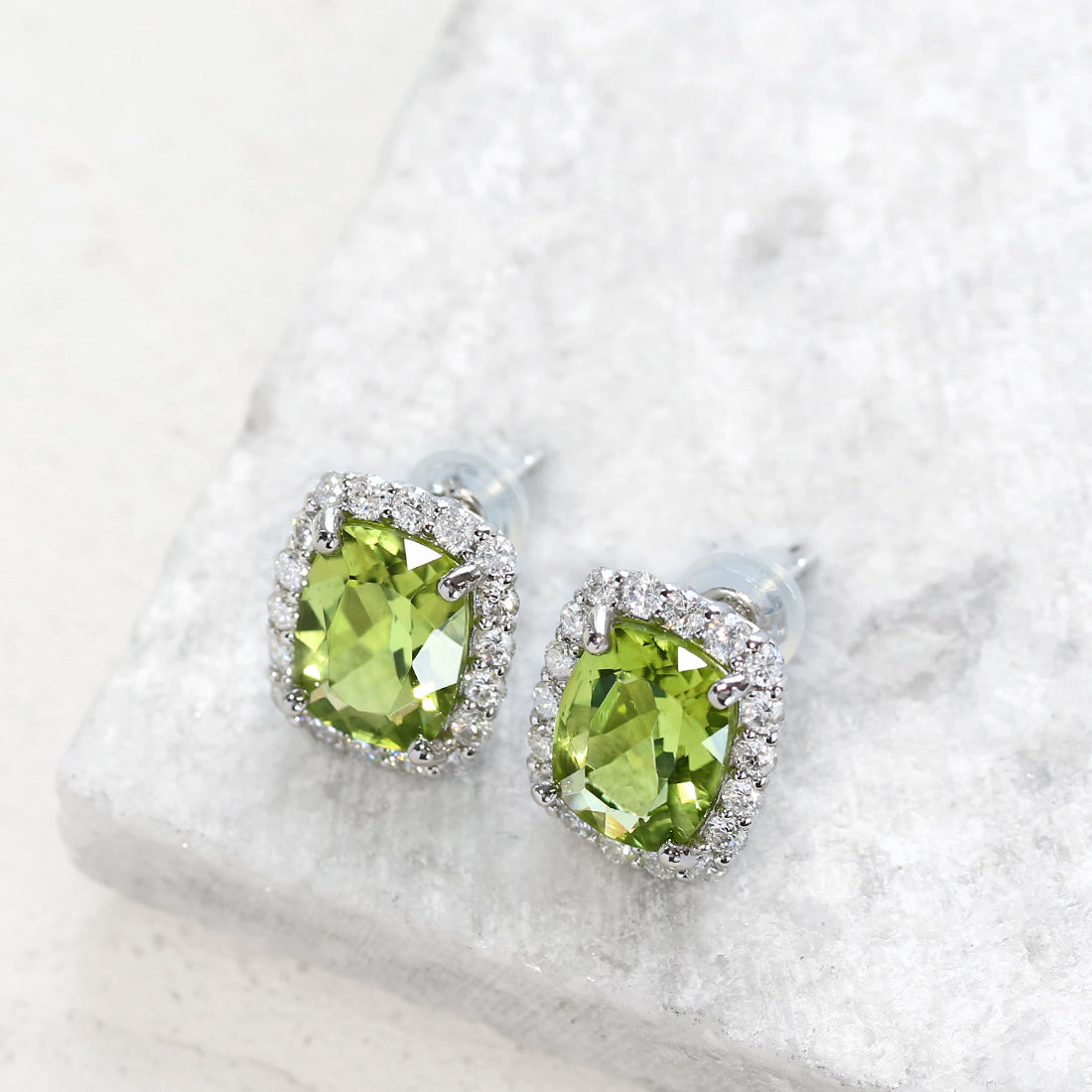 ペアシェイプ ペリドットピアス PT