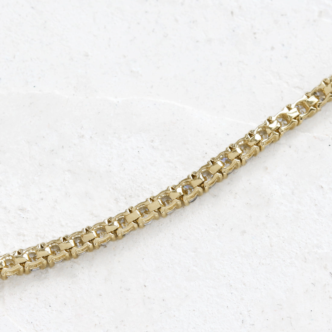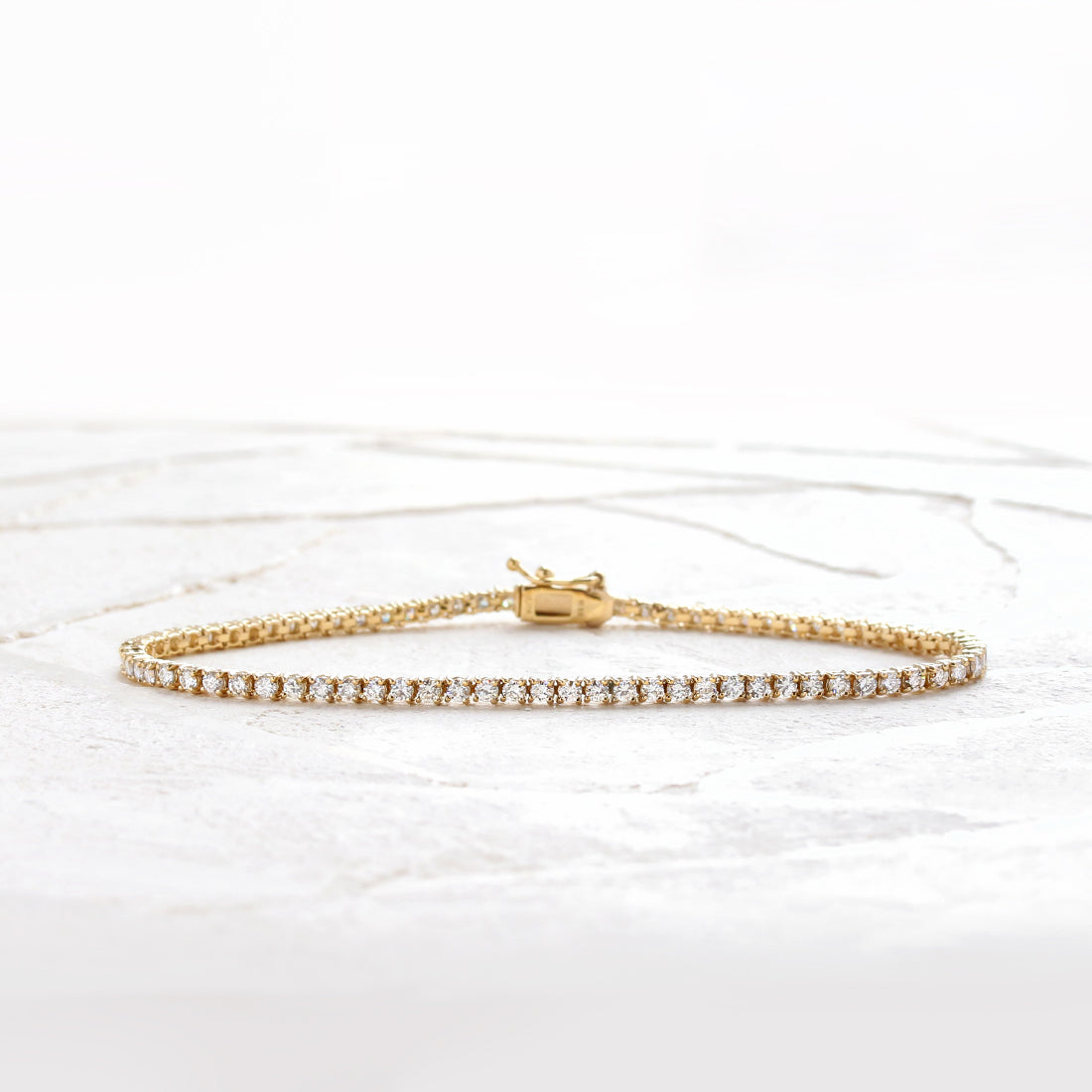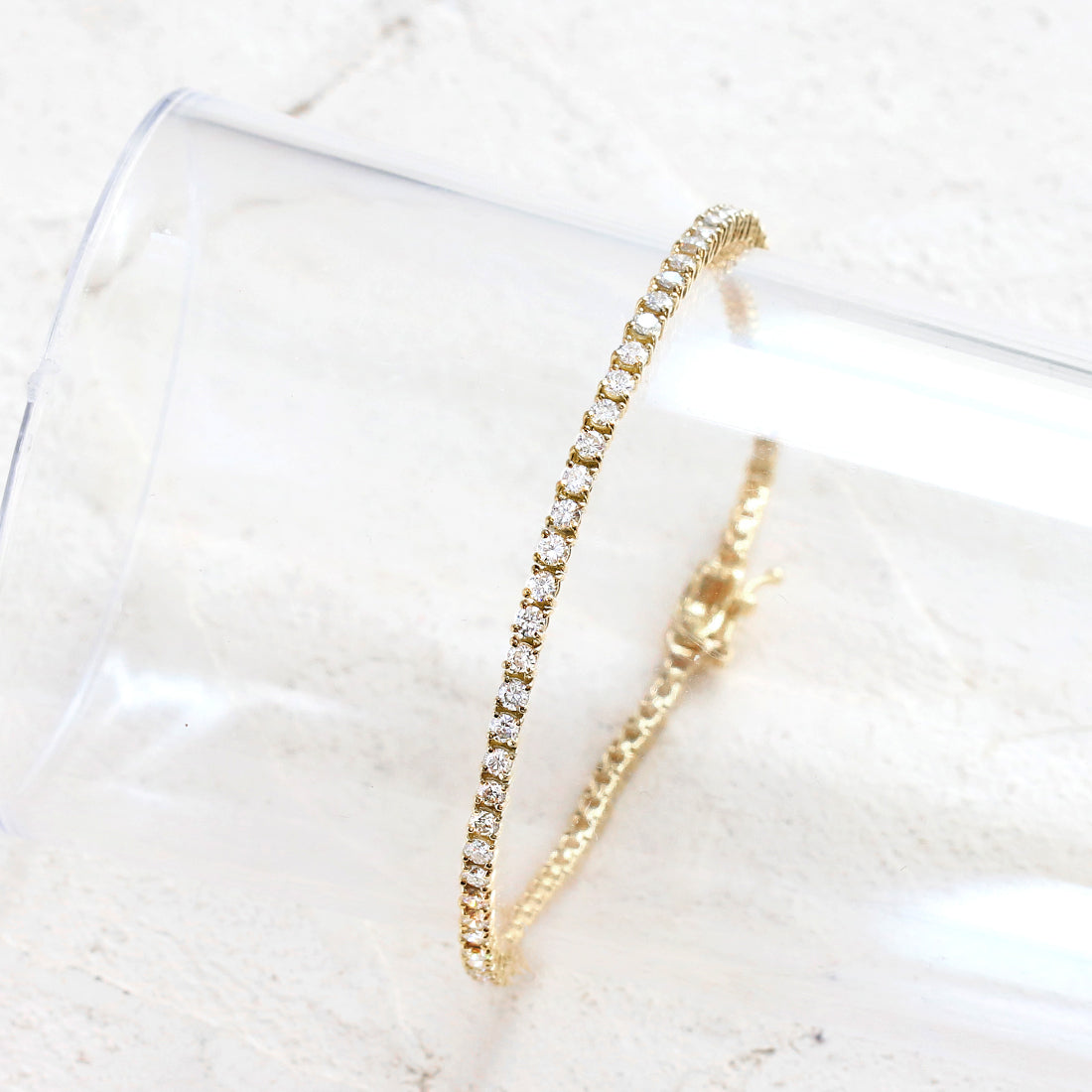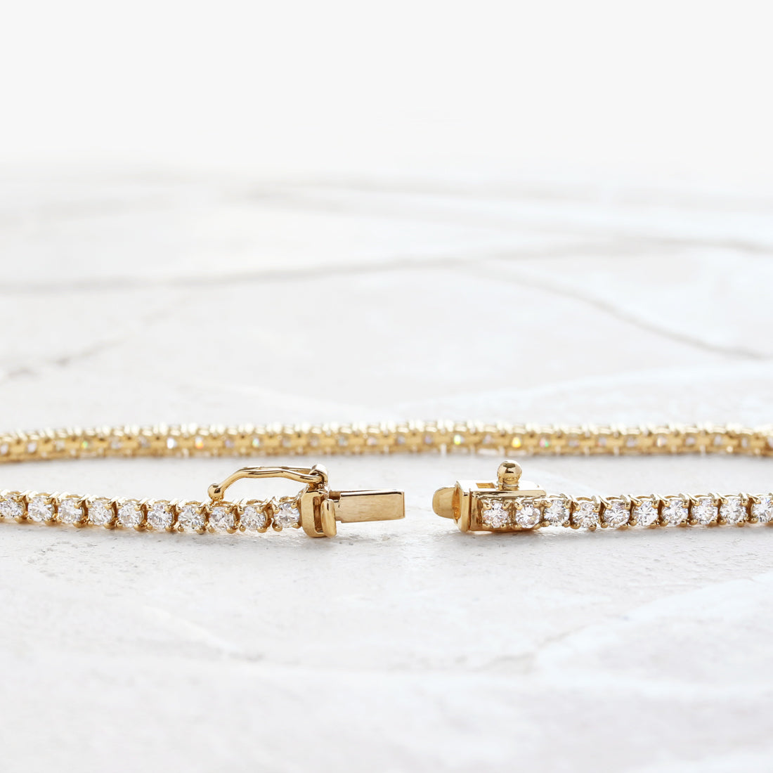 キラキラと輝くダイヤモンドがぐるりと一周するダイヤモンドテニスブレスレット。