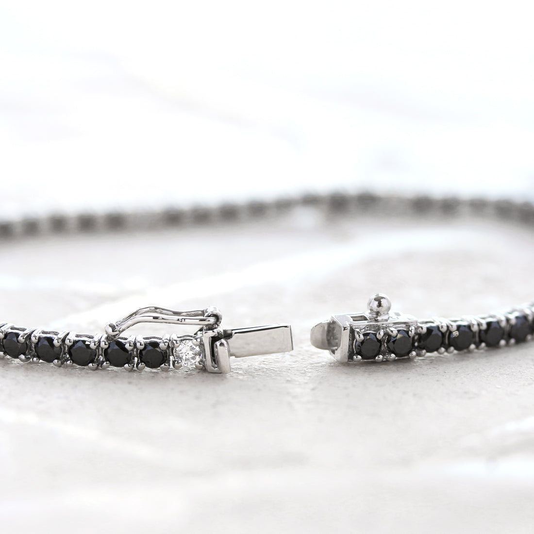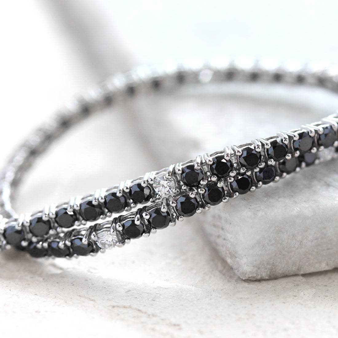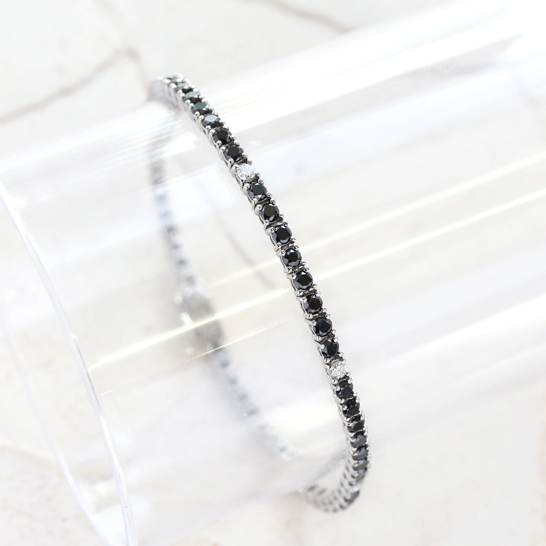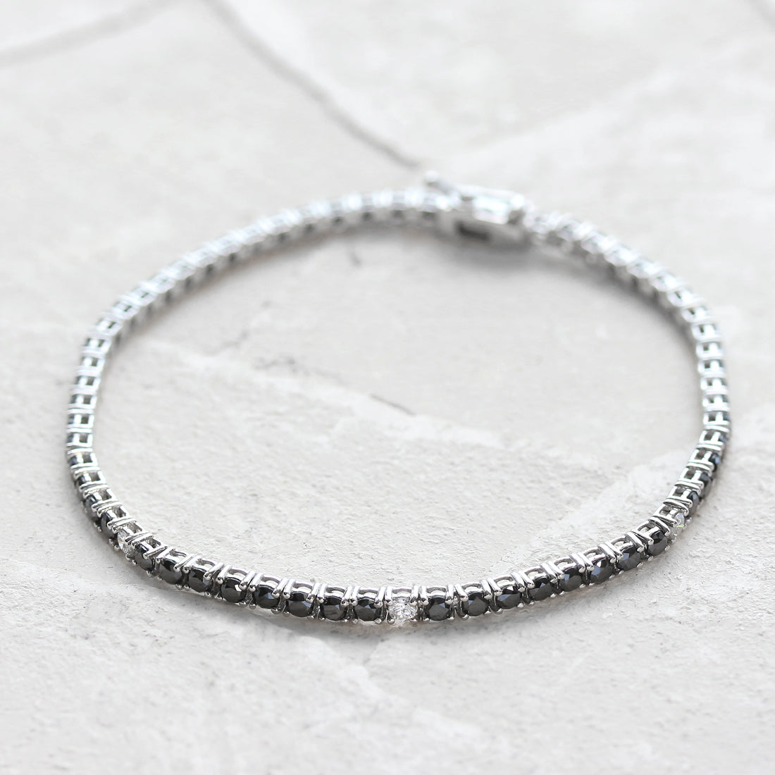 深みのある輝きを放つブラックダイヤモンドを、贅沢に一周あしらったテニスブレスレット。