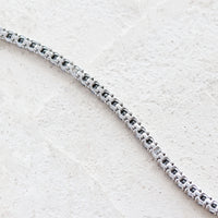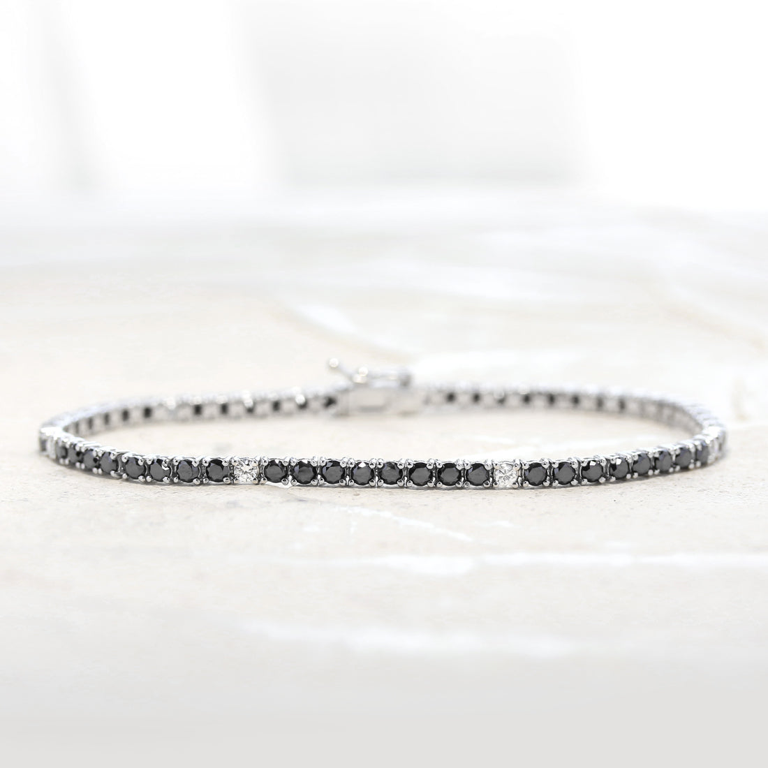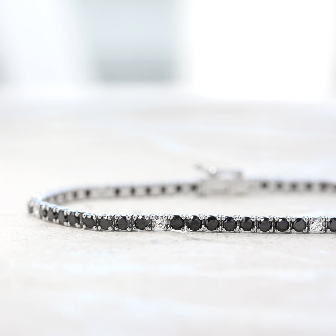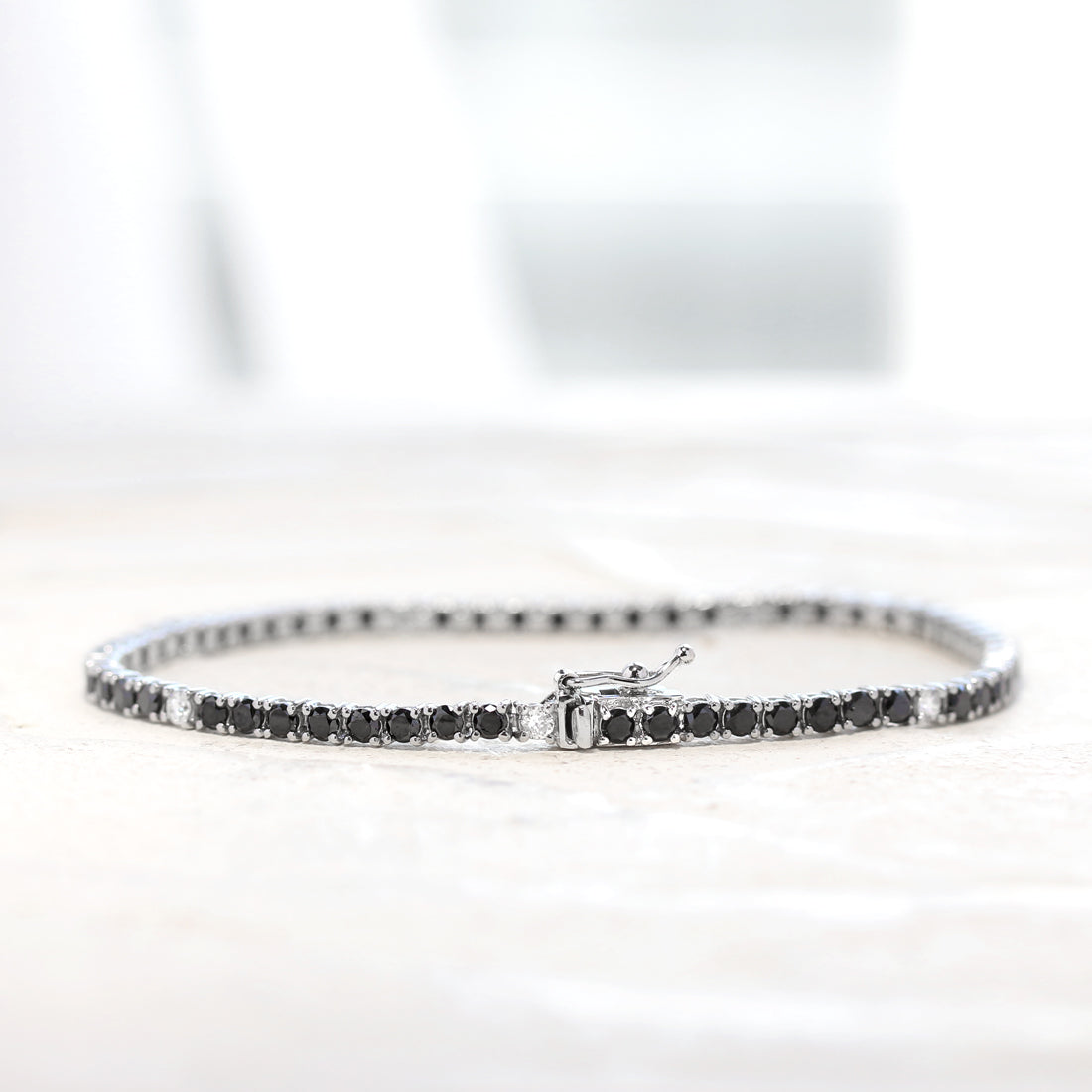深みのある輝きを放つブラックダイヤモンドを、贅沢に一周あしらったテニスブレスレット。