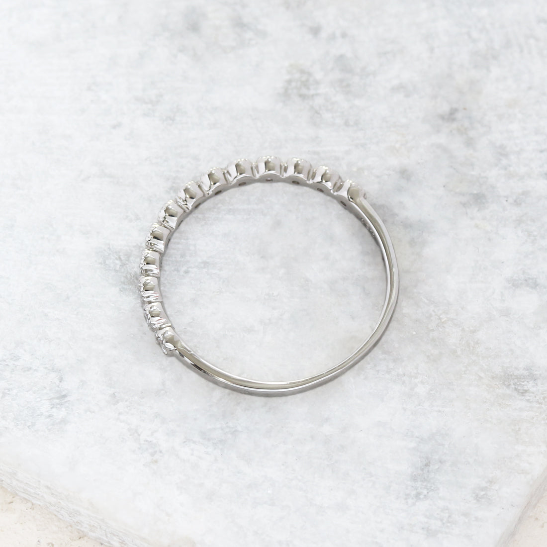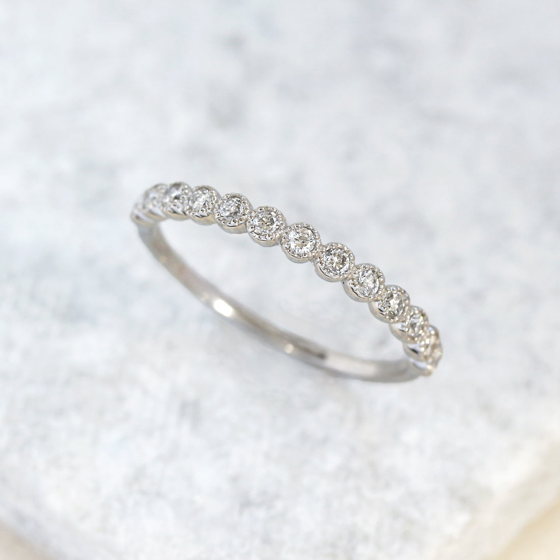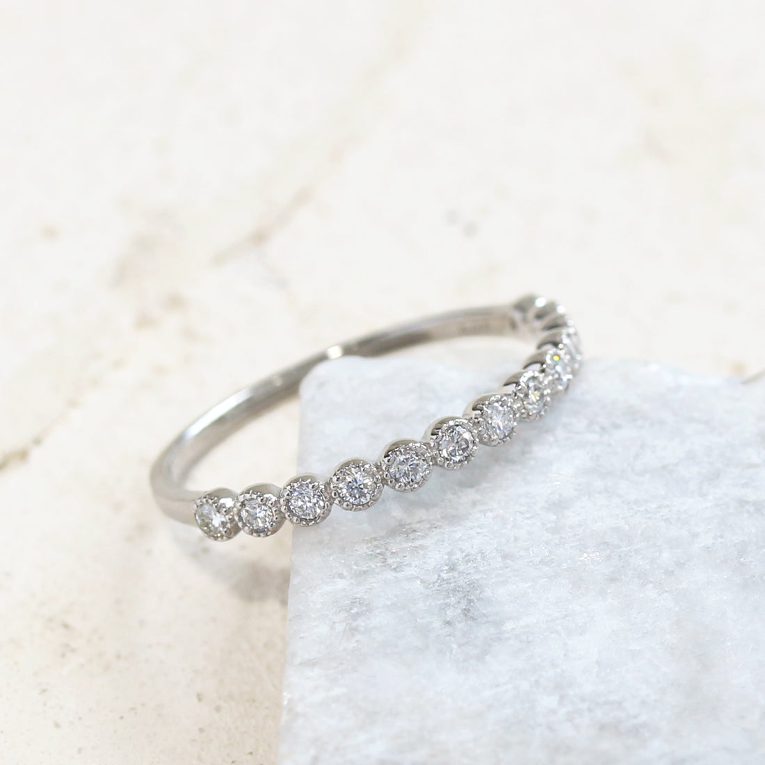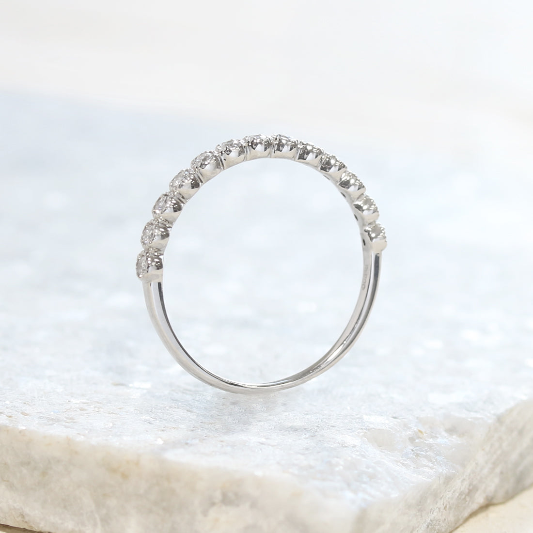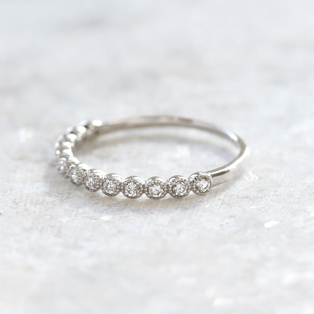 一粒一粒澄んだ輝きのメレダイヤモンドを、端正に連ねたハーフエタニティリング。