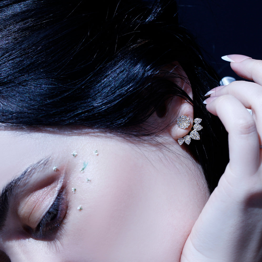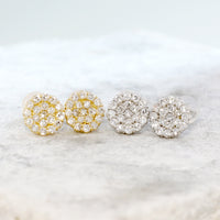 繊細に輝くダイヤモンドをぎっしりと敷き詰めたスタッドピアス。