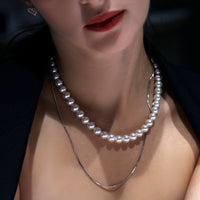 鑑別結果で巻、形、光沢(テリ)、キズ、仕上げの全てが最上クラスと認められた花珠真珠を使用したネックレスピアスセット。上質な真珠にのみ現れる、ピンクやグリーンに反射するオーロラのような美しい光沢が華やかに彩ります。