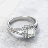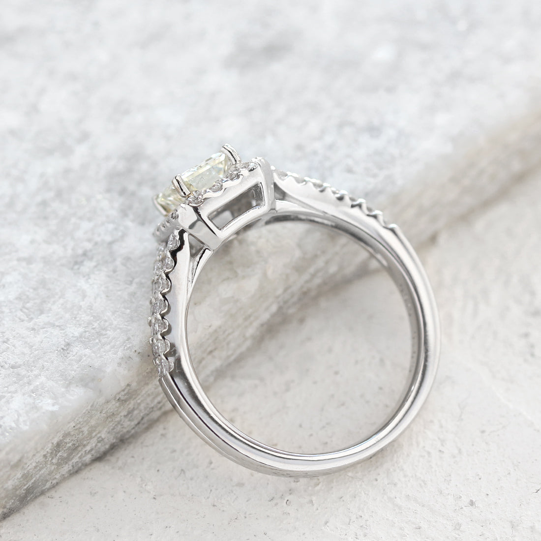 ダイヤモンドの端正なラインが生み出す凛とした佇まいに、思わず心を奪われるスクエアヘイローリング。