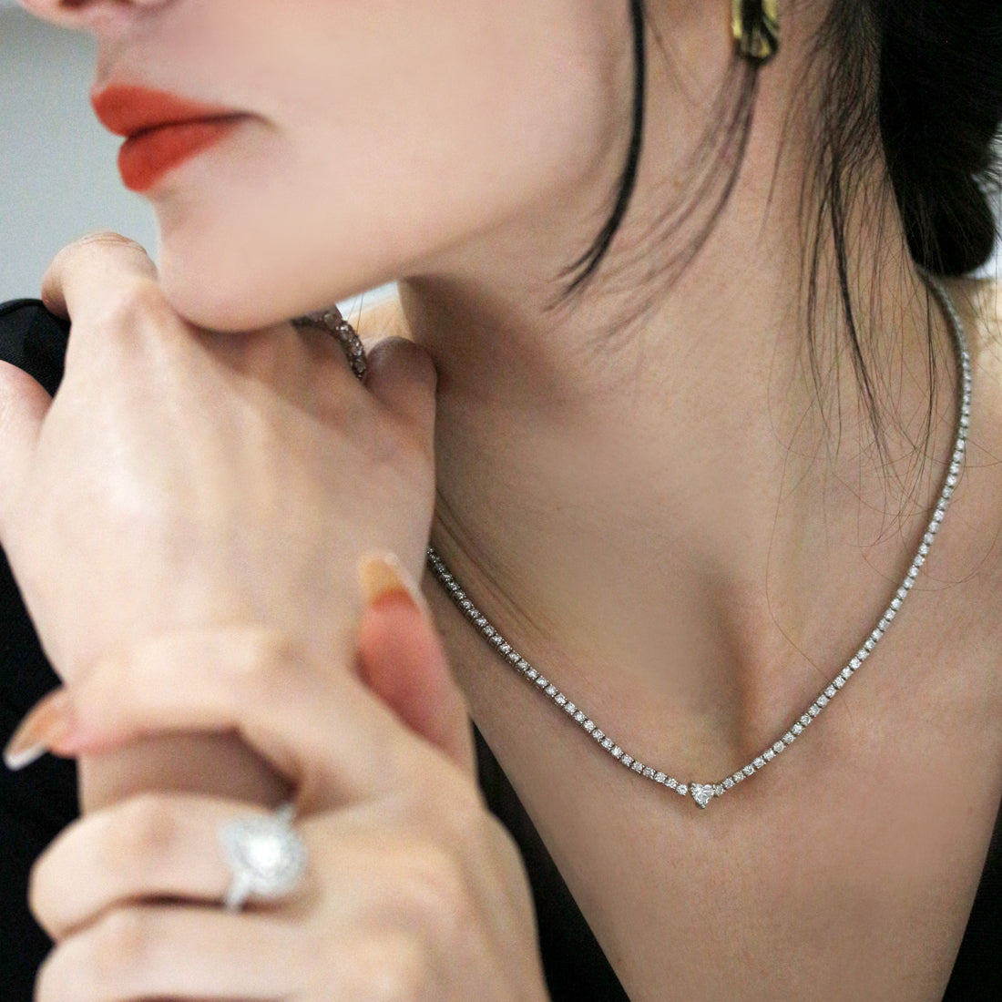 普段使いしやすいシンプルなテニスネックレスに、キュートなハートシェイプのアクセント。