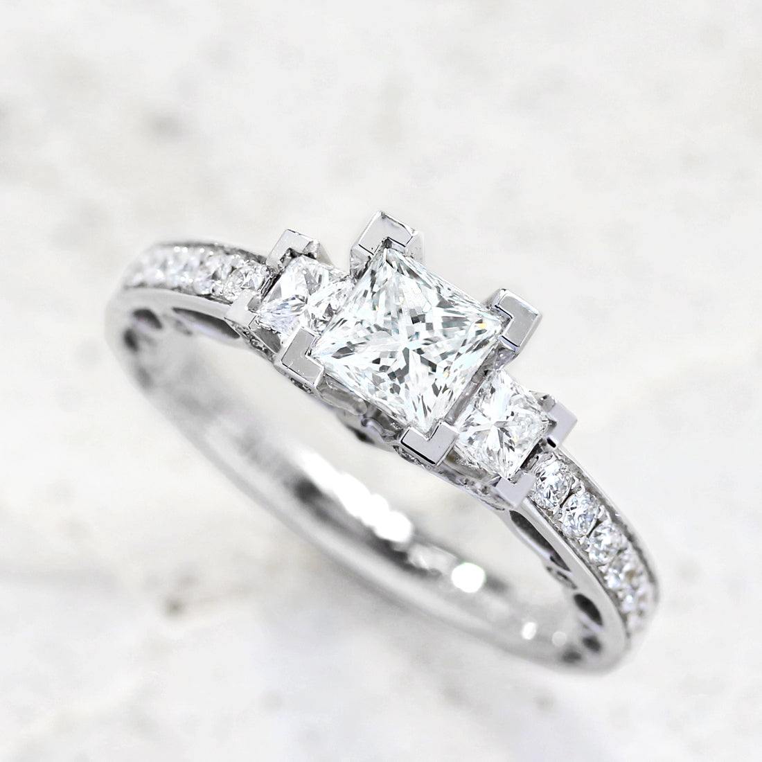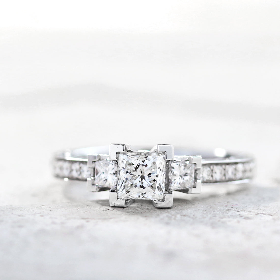 繊細なファセットから力強い輝きが溢れるプリンセスカットダイヤモンド。