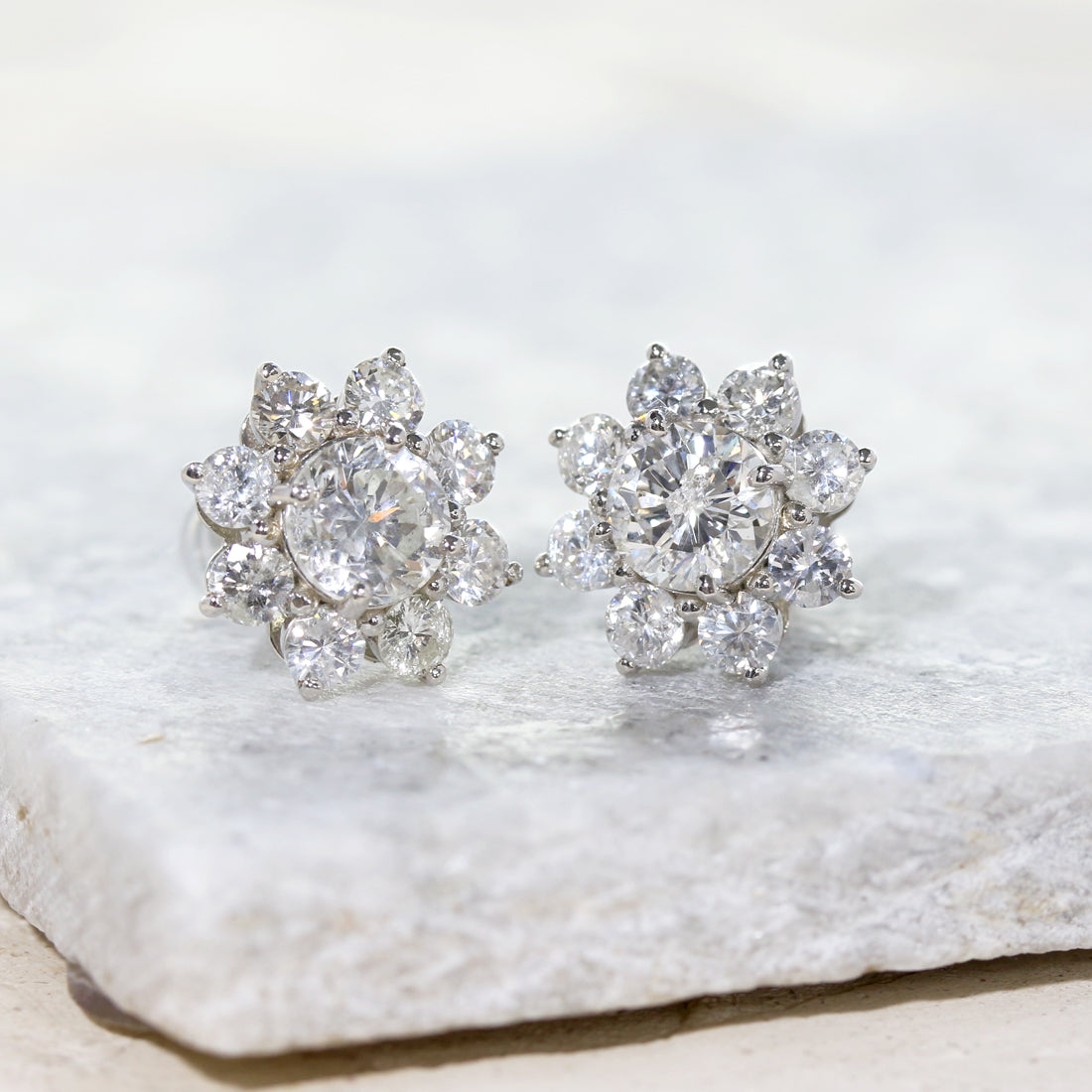 凛とした輝きとともに咲き誇る、フラワーダイヤモンドピアス。