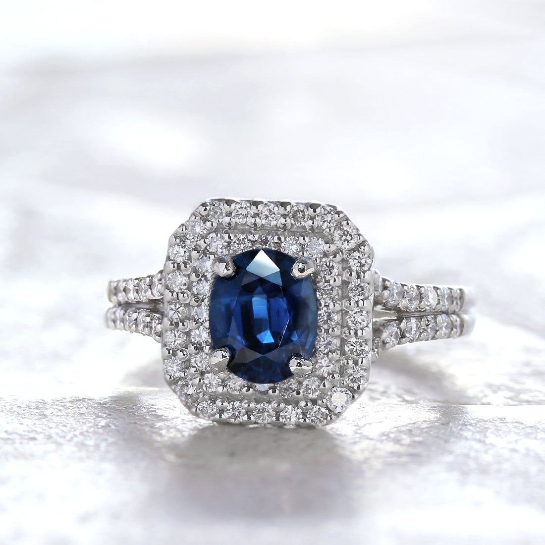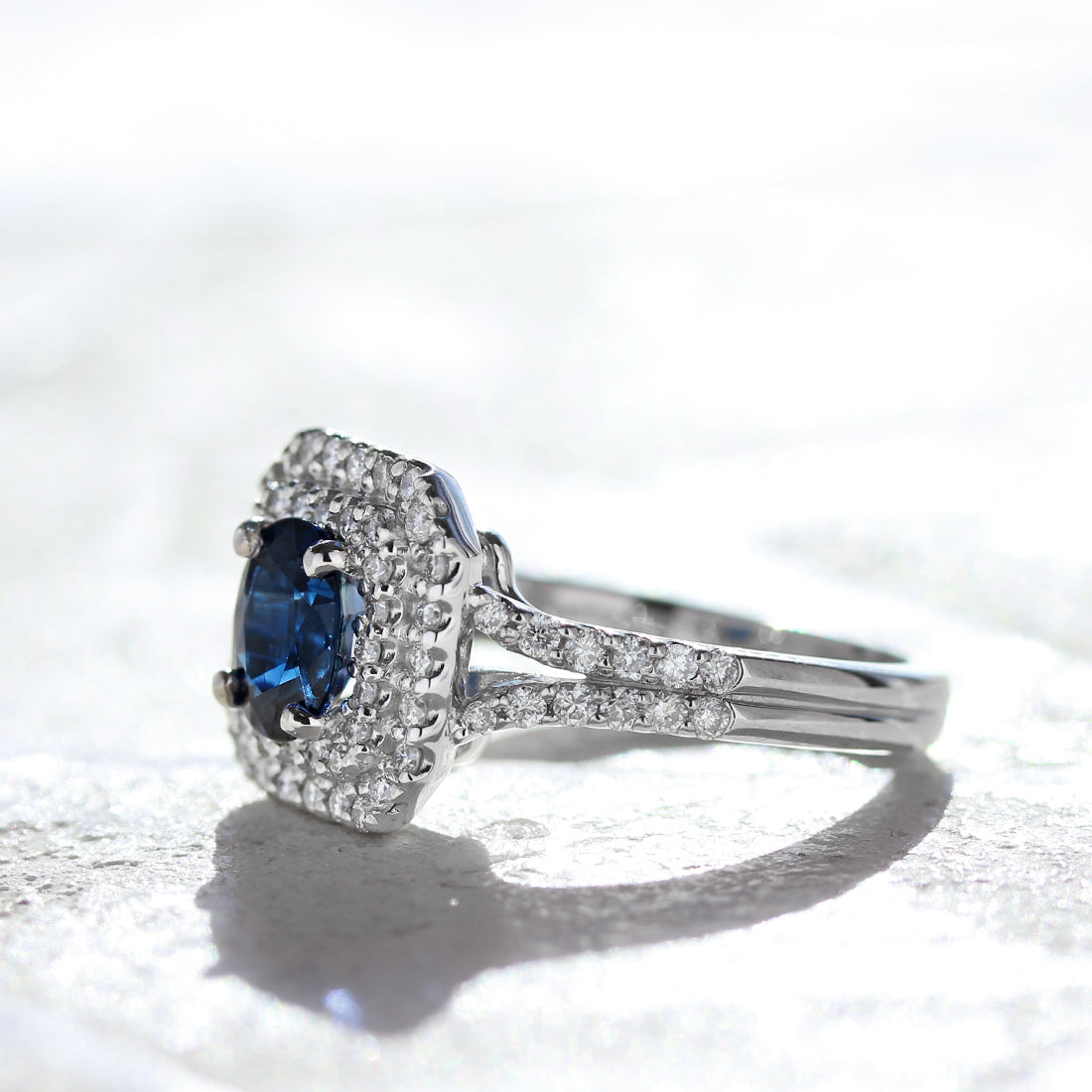 深く濃厚なブルーが印象的な、王道サファイアリング。