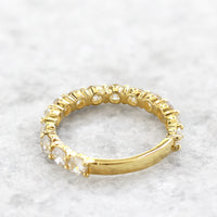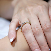 キラキラと煌めくダイヤモンドを並べたハーフエタニティダイヤモンドリング。