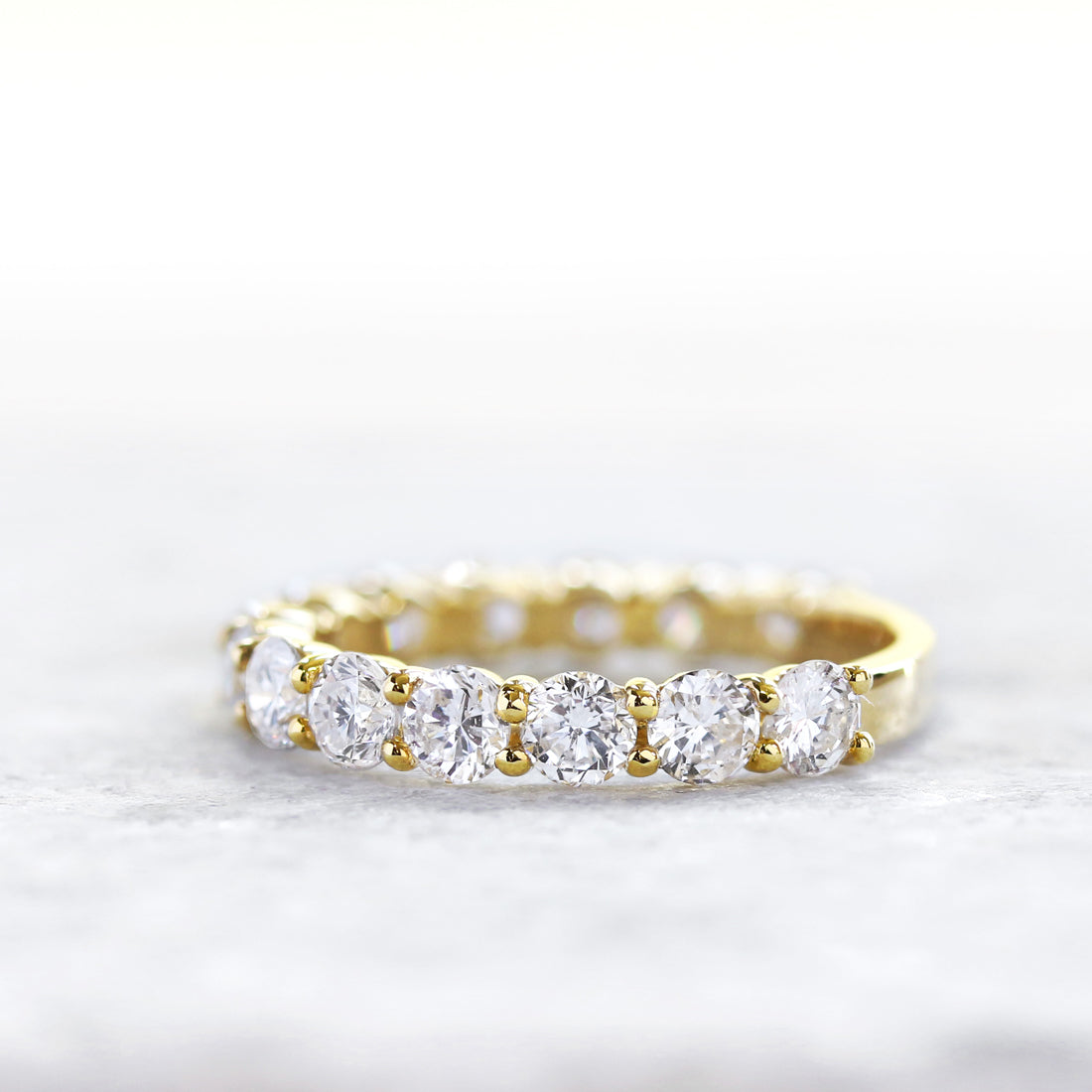 華やかな存在感を放つ2.0ct(3.1mm幅)のリングは、ダイヤモンドひとつひとつがはっきりと煌めき堂々とした品格のあるオーラを感じます。