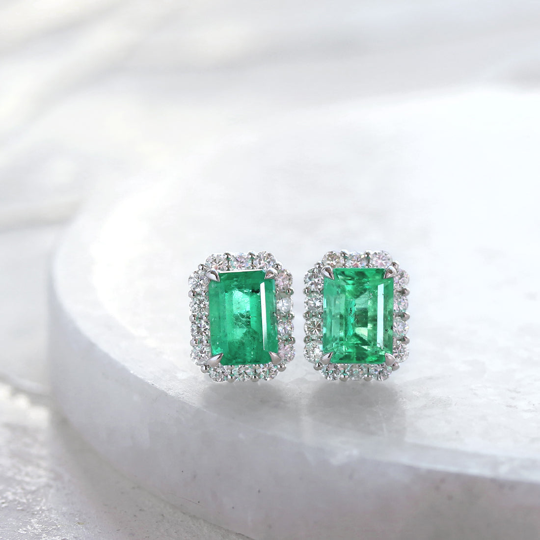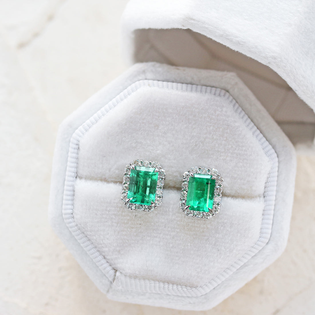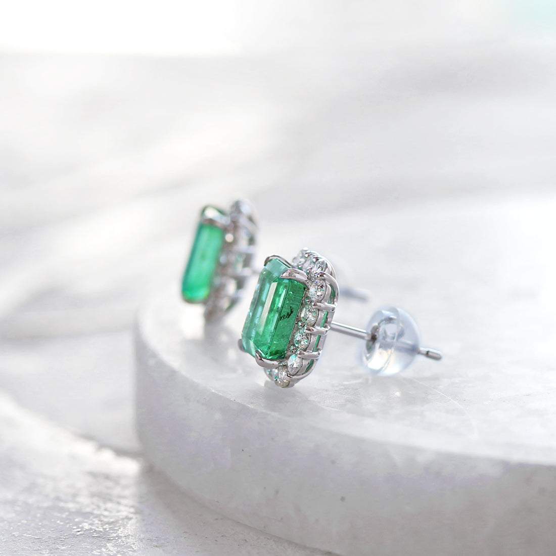 爽やかに澄んだ透明感と、ビビットグリーンの彩が映えるエメラルドピアス。
