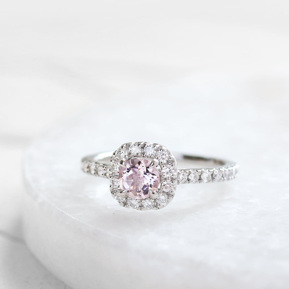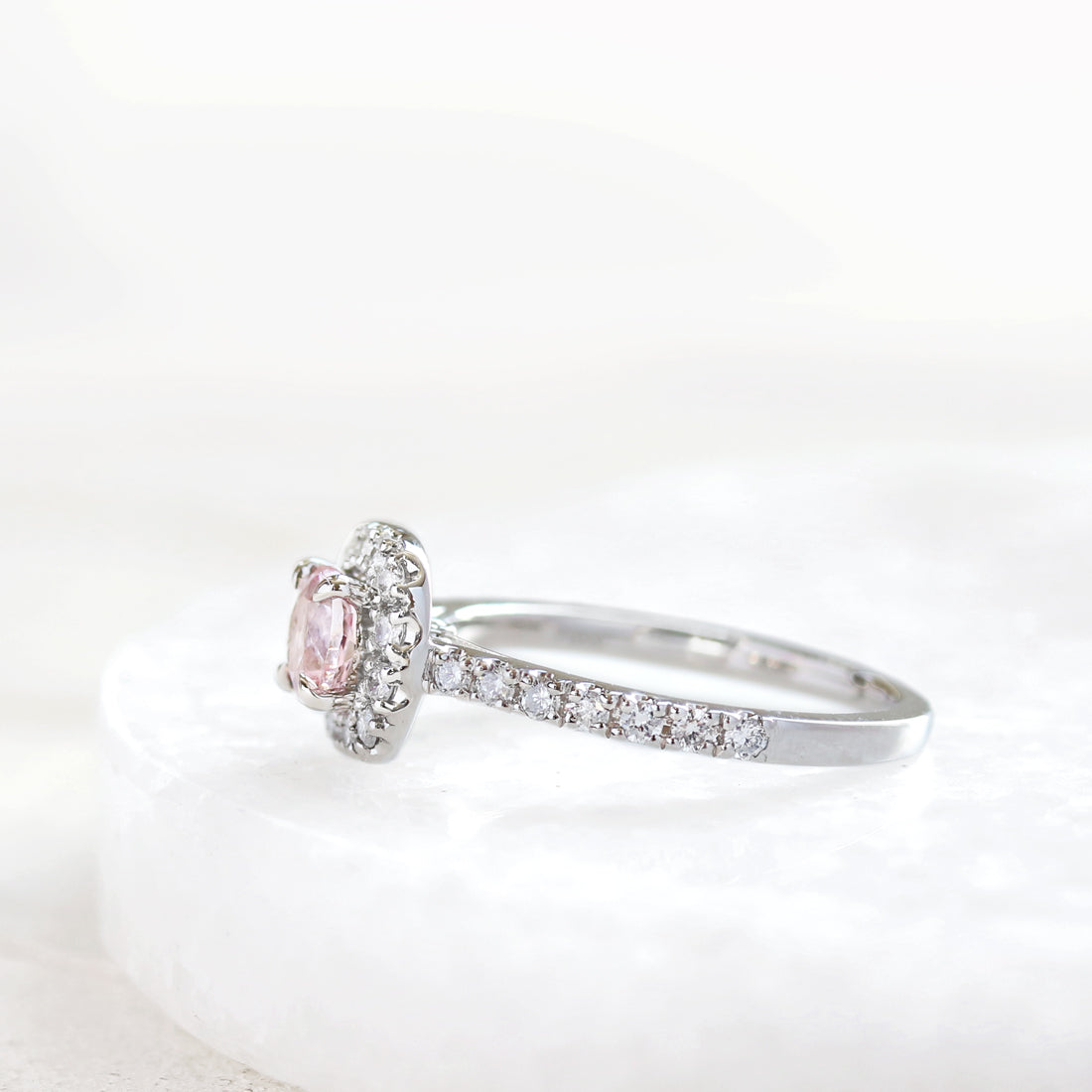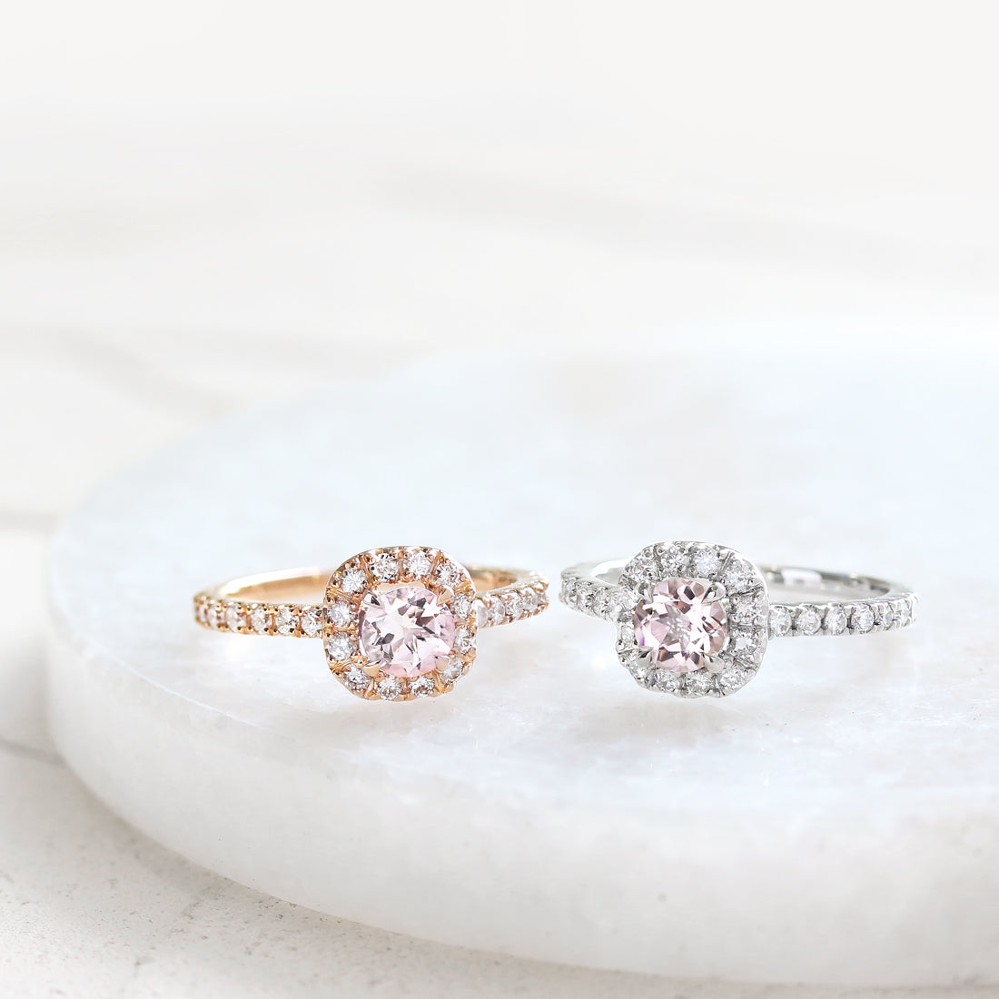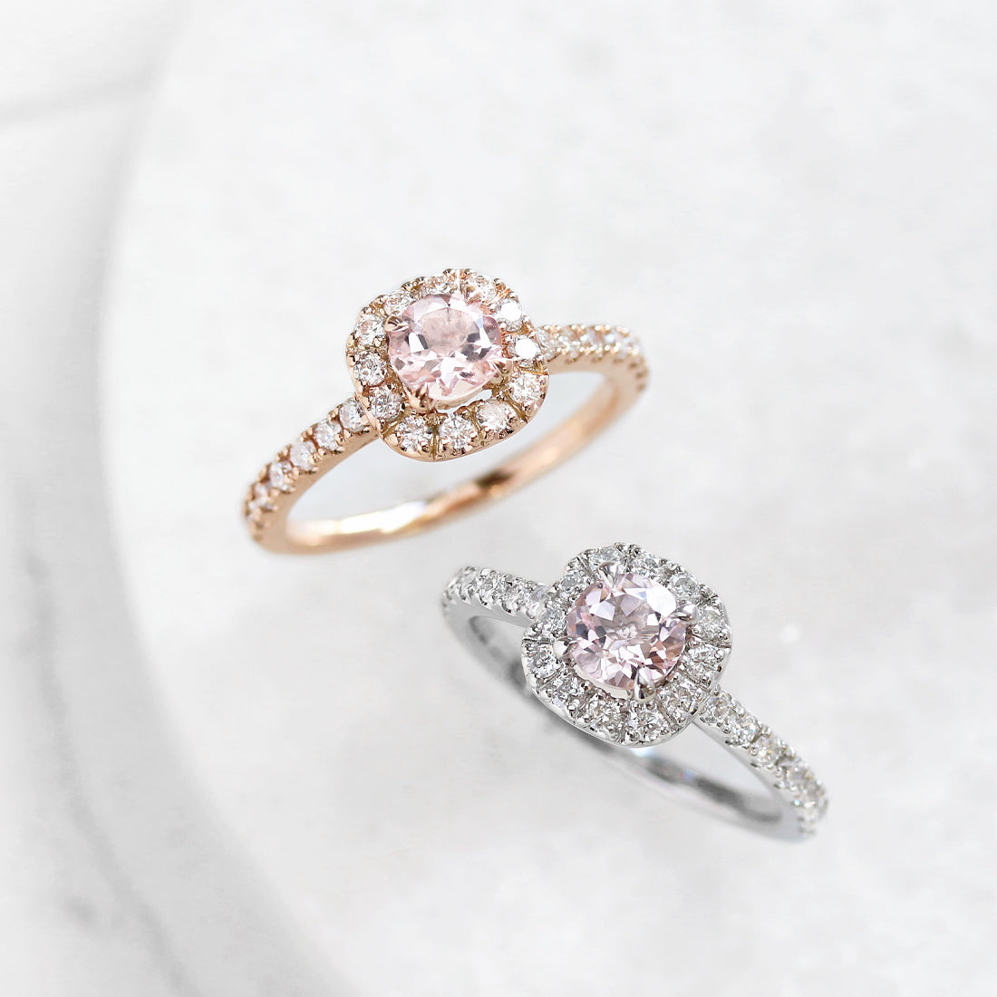 優しい桜色がロマンティックに輝くモルガナイトリング。
