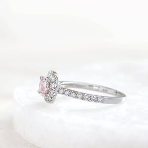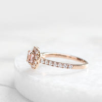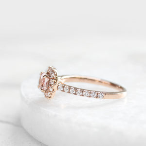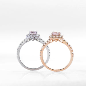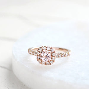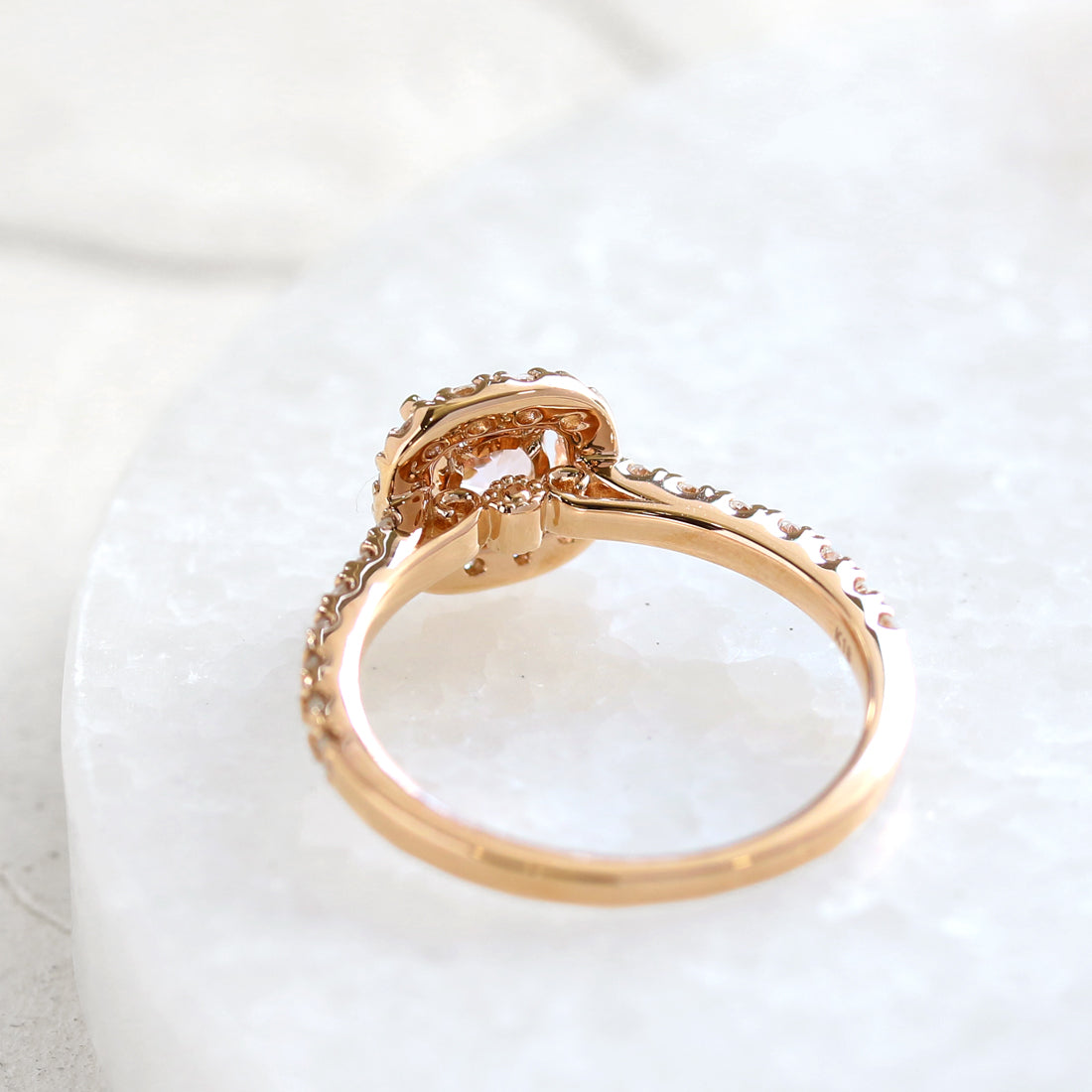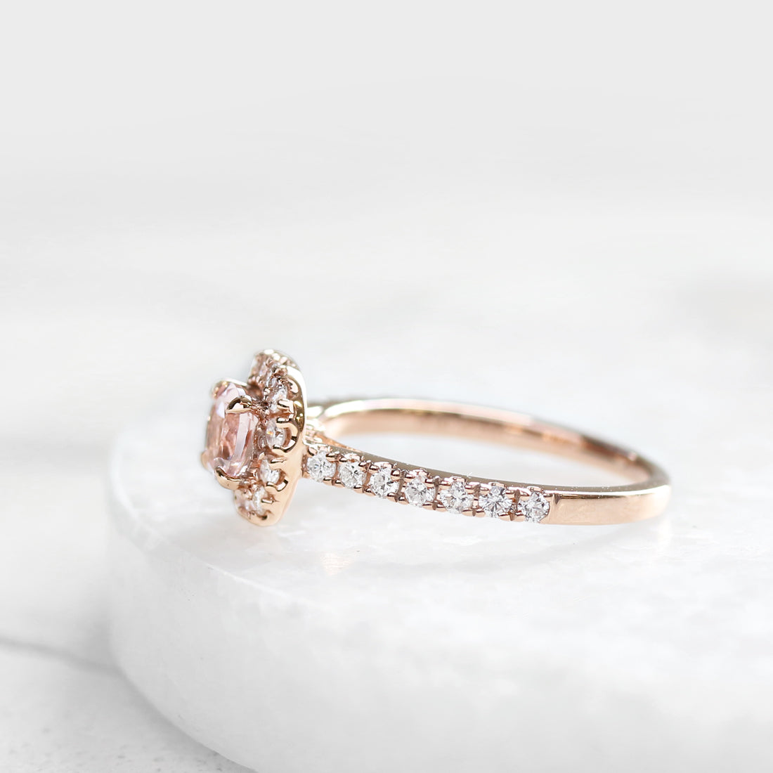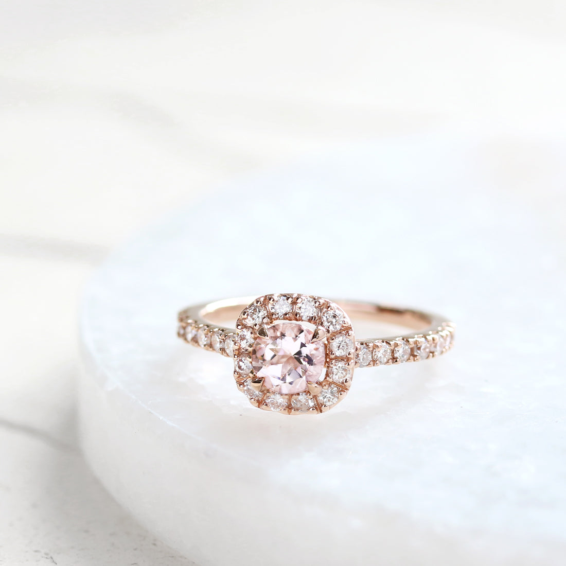 優しい桜色がロマンティックに輝くモルガナイトリング。