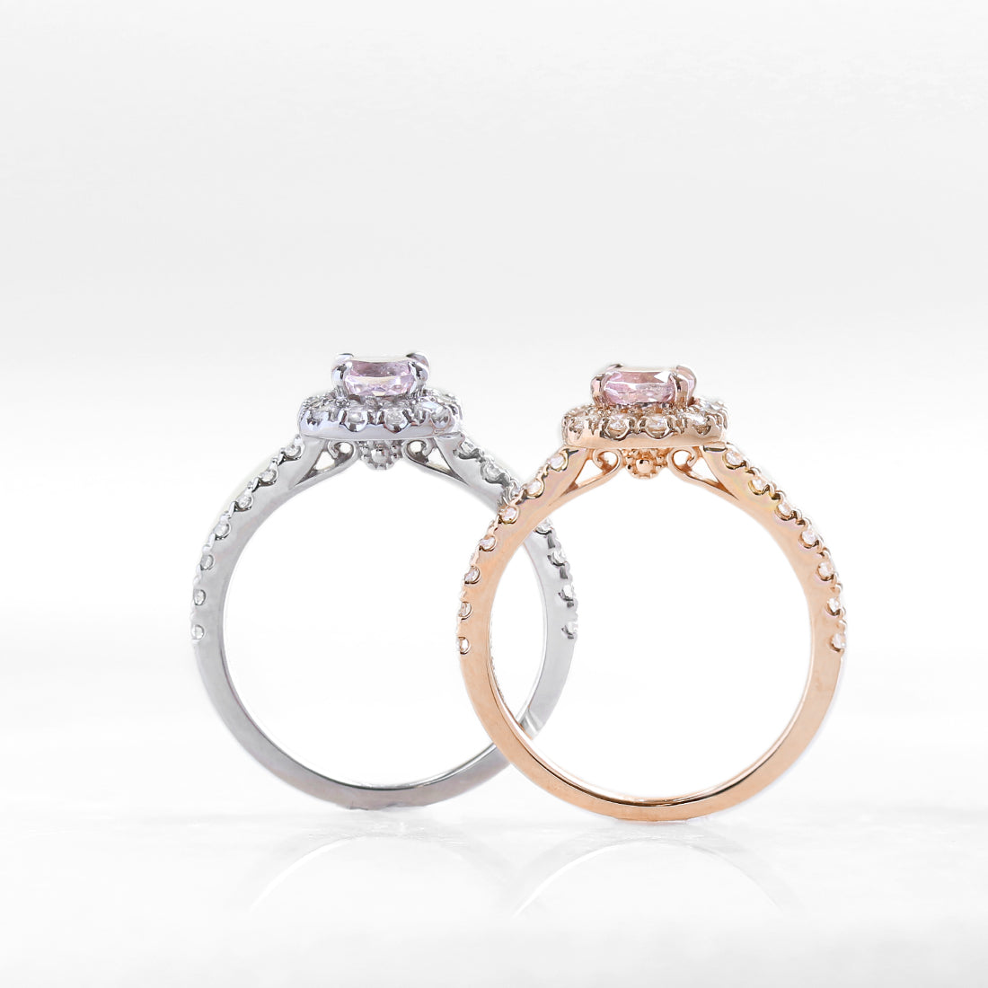 みずみずしいモルガナイトに合わせ、肌なじみの良いピンクゴールドと、涼し気な印象のプラチナの2カラーご用意いたしました。