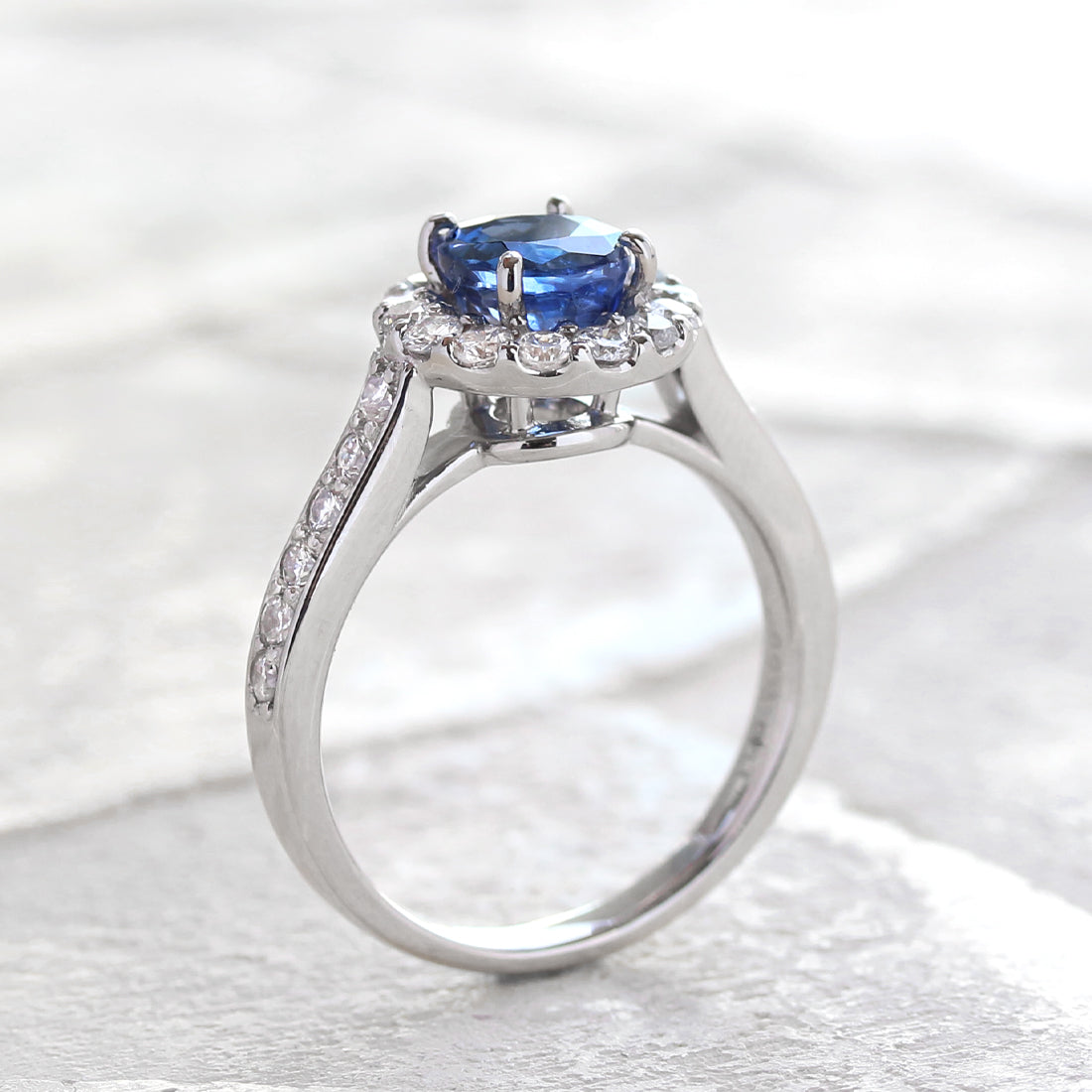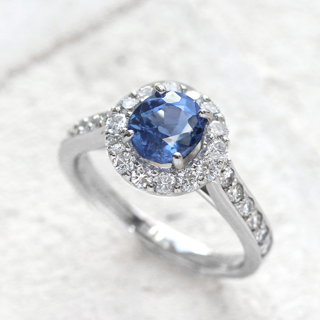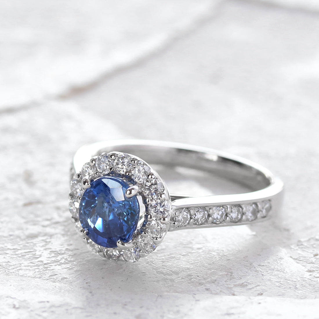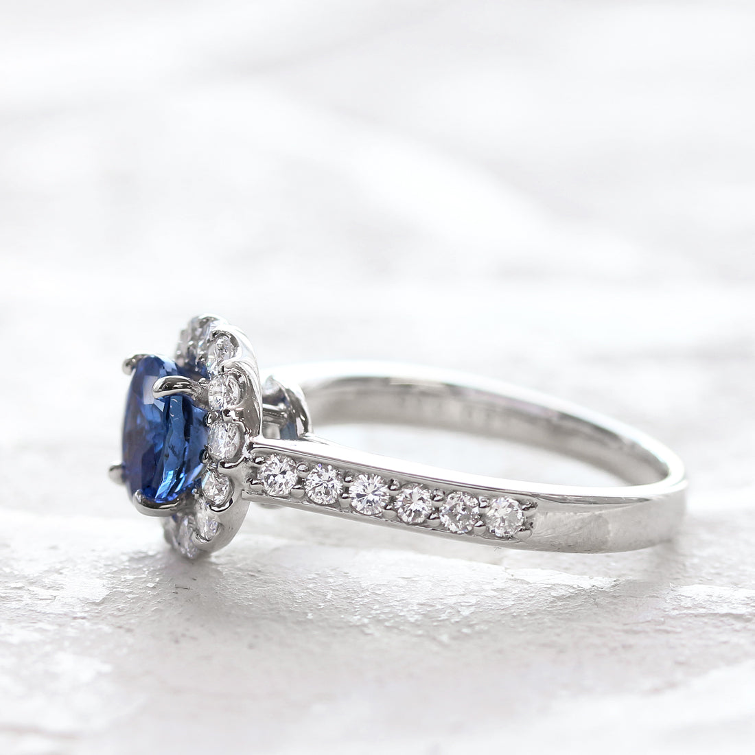 空色を思わせる、柔らかく澄んだブルーが魅力のブルーサファイアリング。