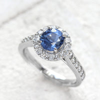 メレダイヤモンドも豊かなファイアを放ち、サファイアの澄んだブルーと美しく調和。