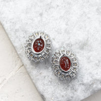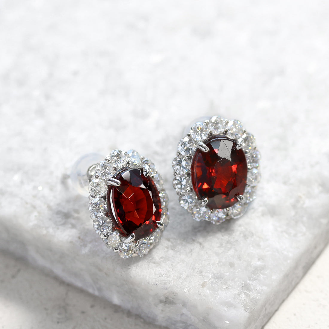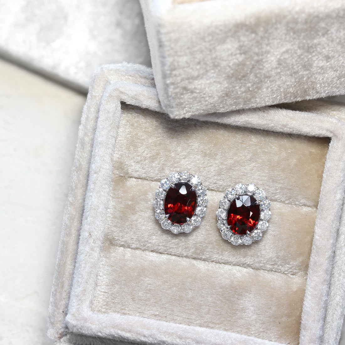 ダイヤモンドで取り巻いたヘイローデザインが、その発色と輝きを一層引き立て、耳元に立体感と品格を添えます。