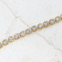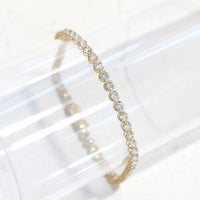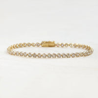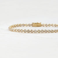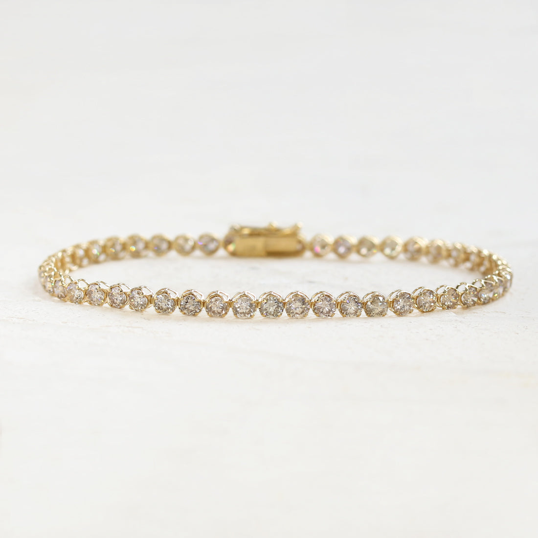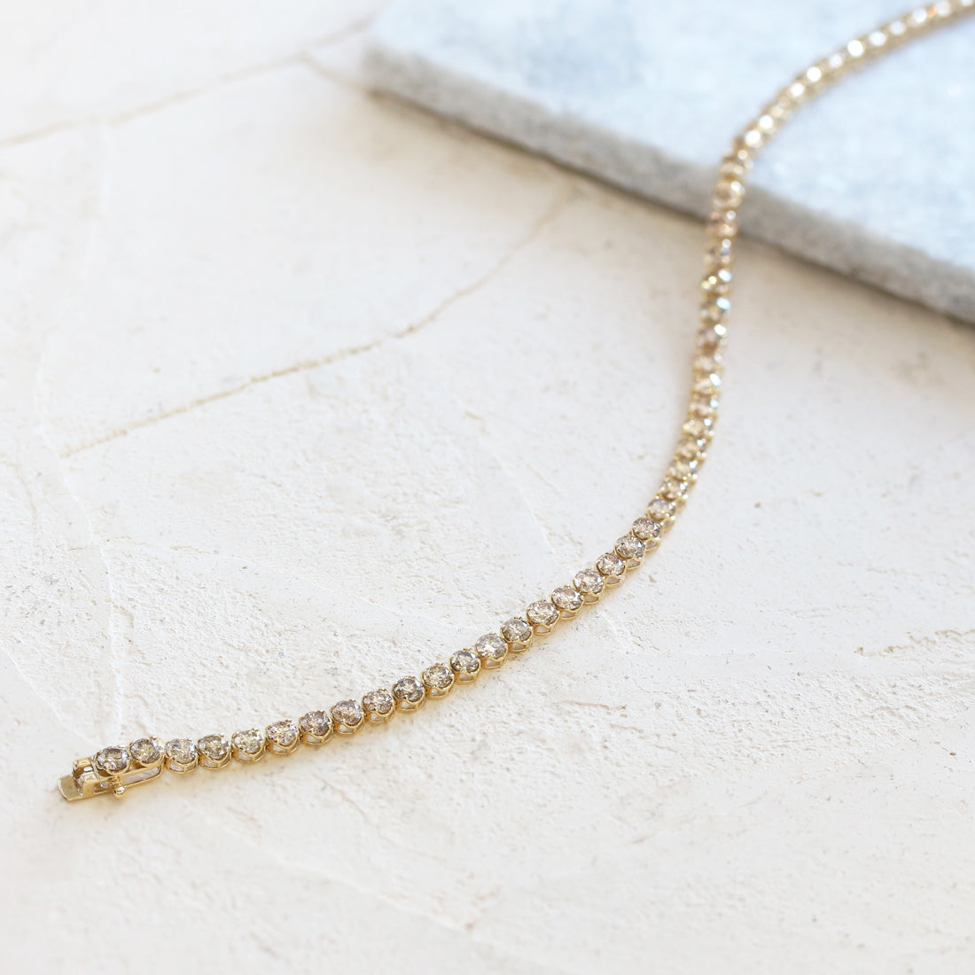 キラキラと輝くほんのりとブラウンカラーを含んだダイヤモンドがぐるりと一周するダイヤモンドテニスブレスレット。